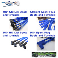 Although we try to keep all of the popular combinations of Eagle ignition leads on the shelf, it is impossible to keep them all on the shelf especially when you take into account that Eagle make their sets in 5.0mm, 7.0mm, 8.0mm, 9.0mm, 10.5mm and 11.0mm silicone coated cable in 3 different colours. Then some engines different length sets that reach under exhaust manifold, over the valve cover and around the valve cover sets. On top of that we need to account for different spark plug boots and standard ignition distributor boots (female cap posts), HEI (male disi cap posts) and MSD boots.