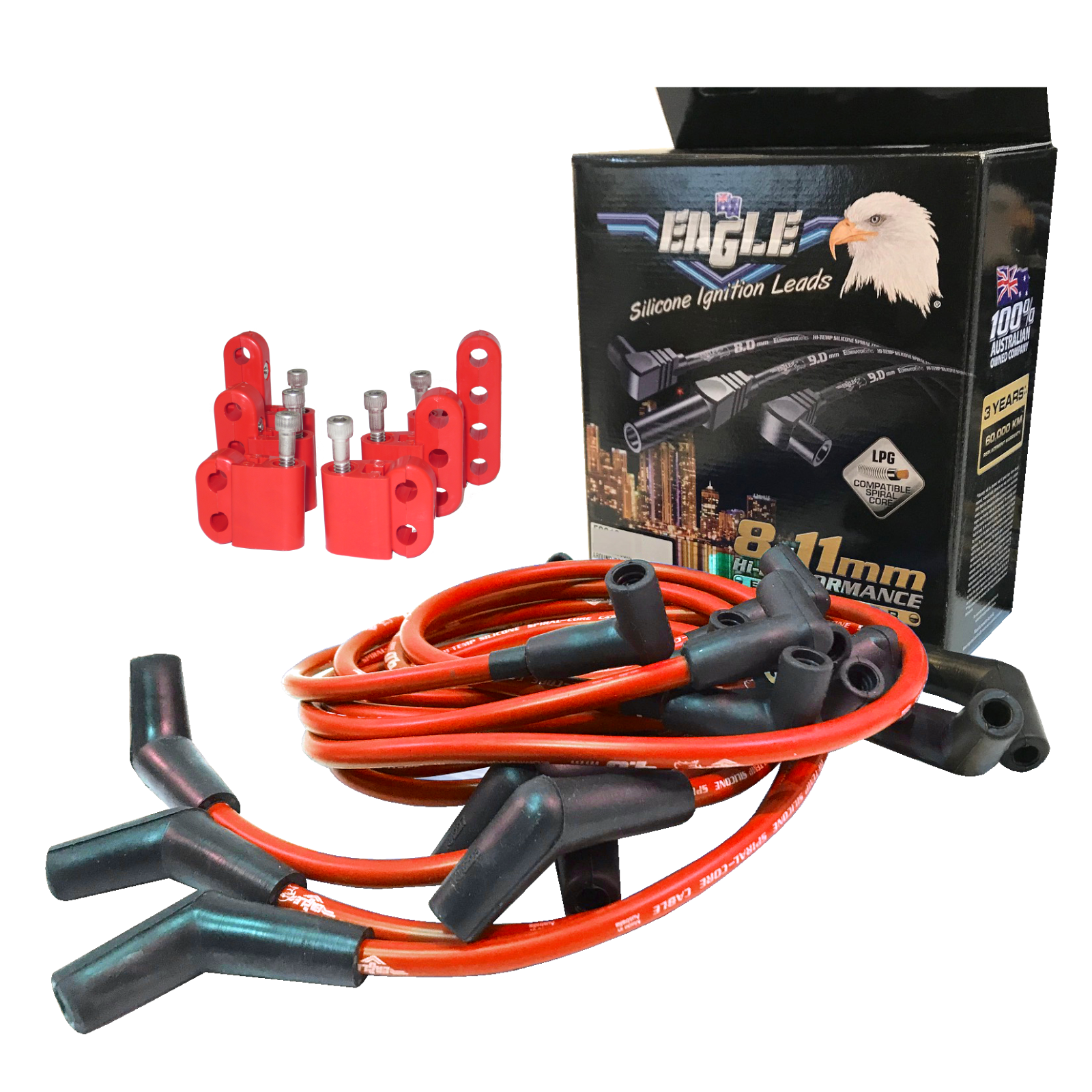 Eagle 9mm Ignition Spark Plug Leads V8 Ford 351 Windsor 115°SPB HEI Around Covers + Mounts Red