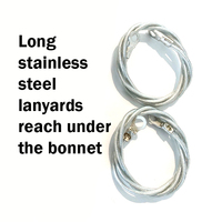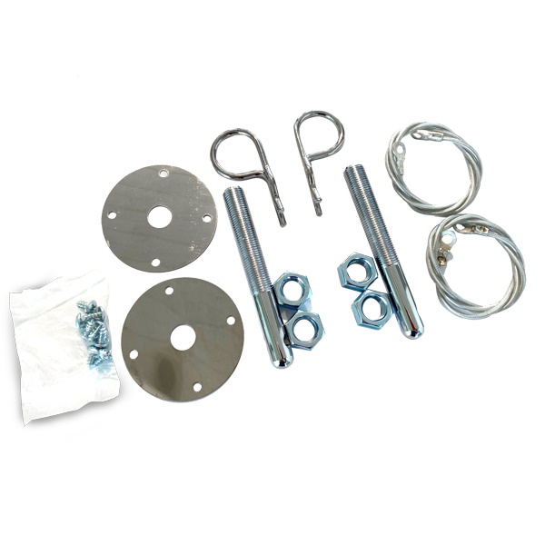 Bonnet Pin Set, Chrome Stainless Steel Lock Clip Kit, Universal, Long Lanyard