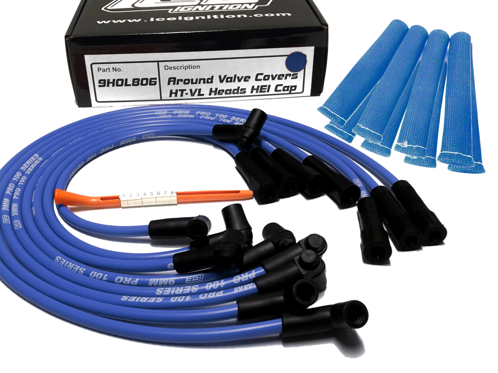 The latest BLUE ICE 9mm PRO 100 SERIES IGNITION LEADS suit Holden V8 253-308 5.0litre, with HT-VL Heads, Around the valve covers