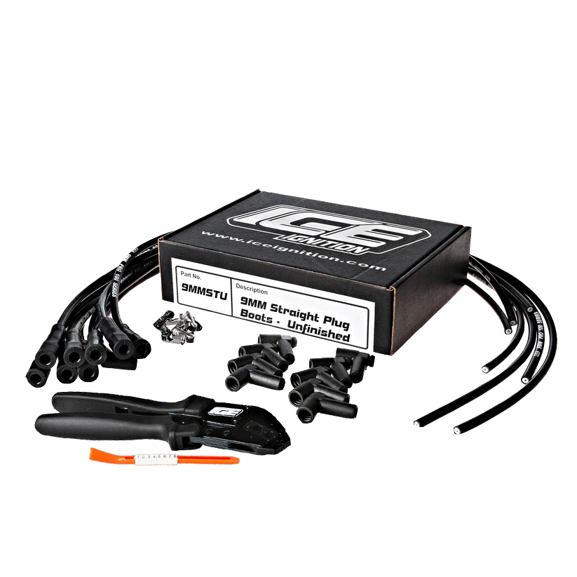 ICE PRO 100 Series 9mm V8 DIY Ignition Lead Kit HEI Male Cap & Coil Spark Plug Boots + Crimp