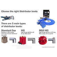 Although we try to keep all of the popular combinations of Eagle ignition leads on the shelf, it is impossible to keep them all on the shelf especially when you take into account that Eagle make their sets in 5.0mm, 7.0mm, 8.0mm, 9.0mm, 10.5mm and 11.0mm silicone coated cable in 3 different colours. Then some engines different length sets that reach under exhaust manifold, over the valve cover and around the valve cover sets. On top of that we need to account for different spark plug boots and standard ignition distributor boots (female cap posts), HEI (male disi cap posts) and MSD boots.